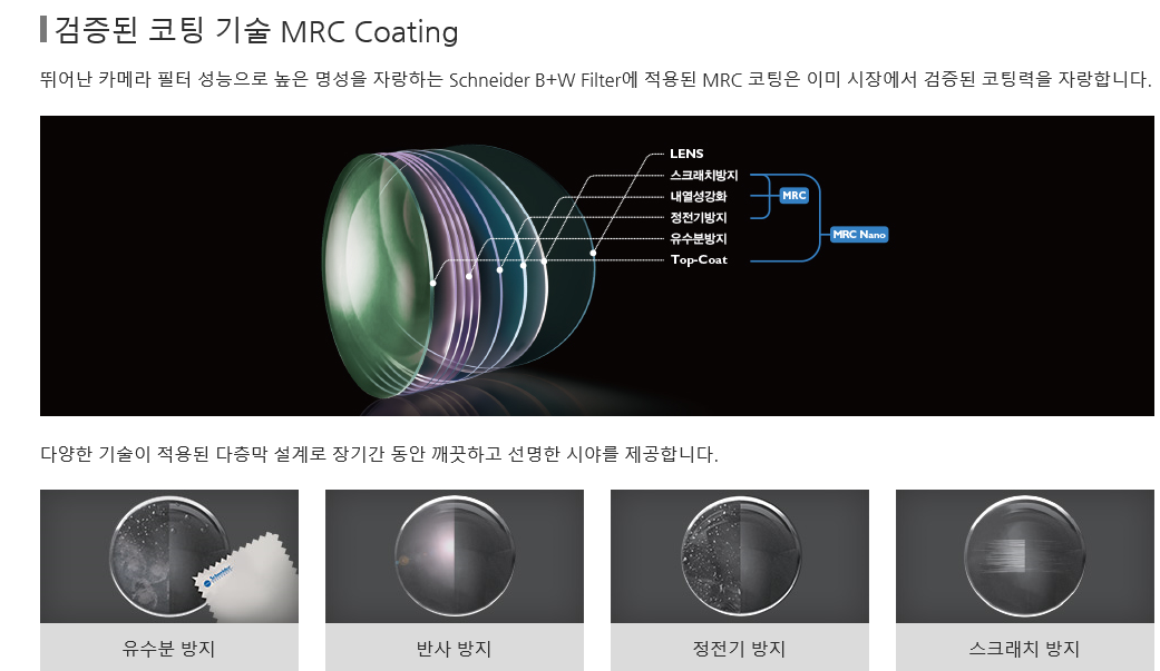 여러겹의 코팅이 적용되는 렌즈입니다.