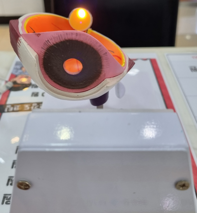 보통의 홍채 크기에서 블루라이트 광선을 비췄을때에는 아무런 문제없이
