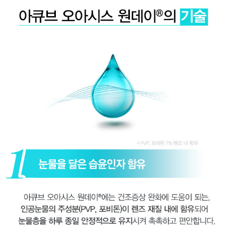원데이 렌즈의 경우 아큐브사 오아시스 제품이